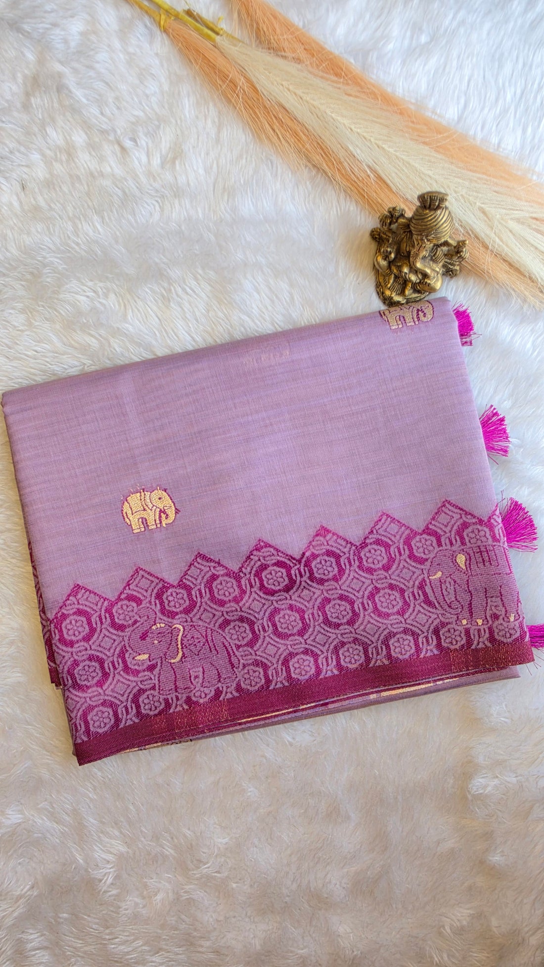 Fabric: Viscose Silk Color: Pastel Blue and Purple Border Print/ Design: Gold and Silver Zari ...