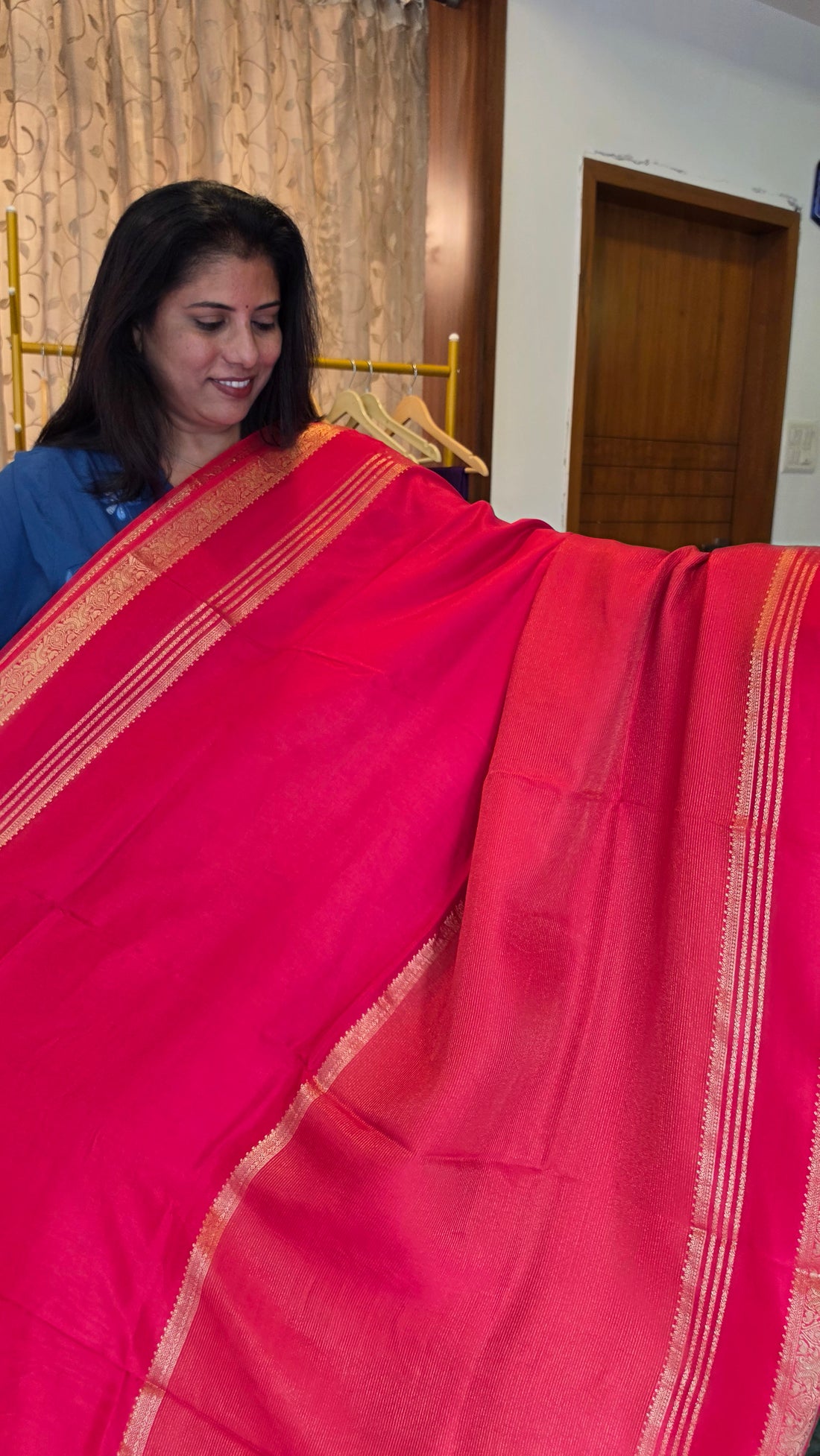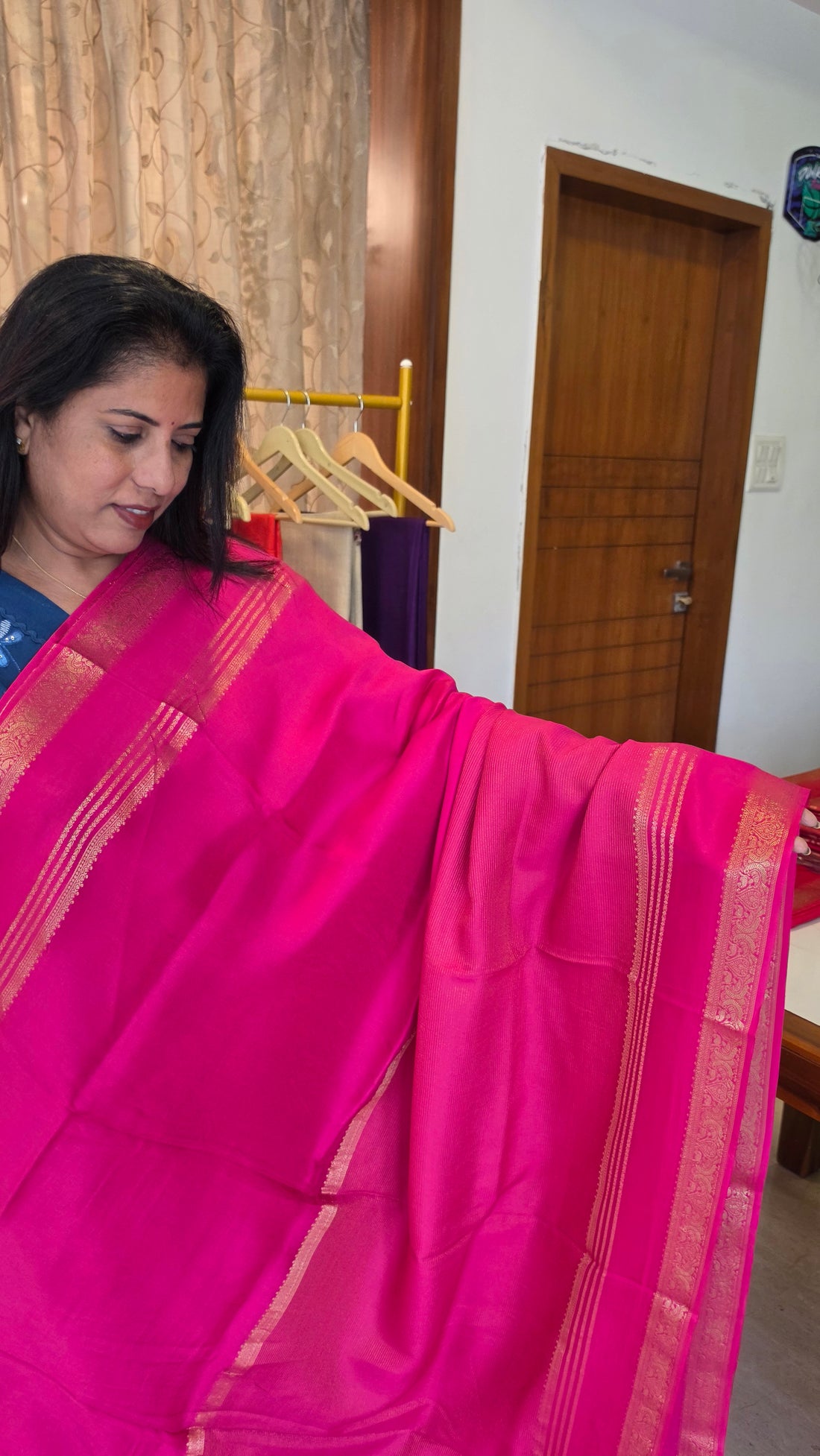 Semi Crepe Silk with Zari Lines-Dark Pink