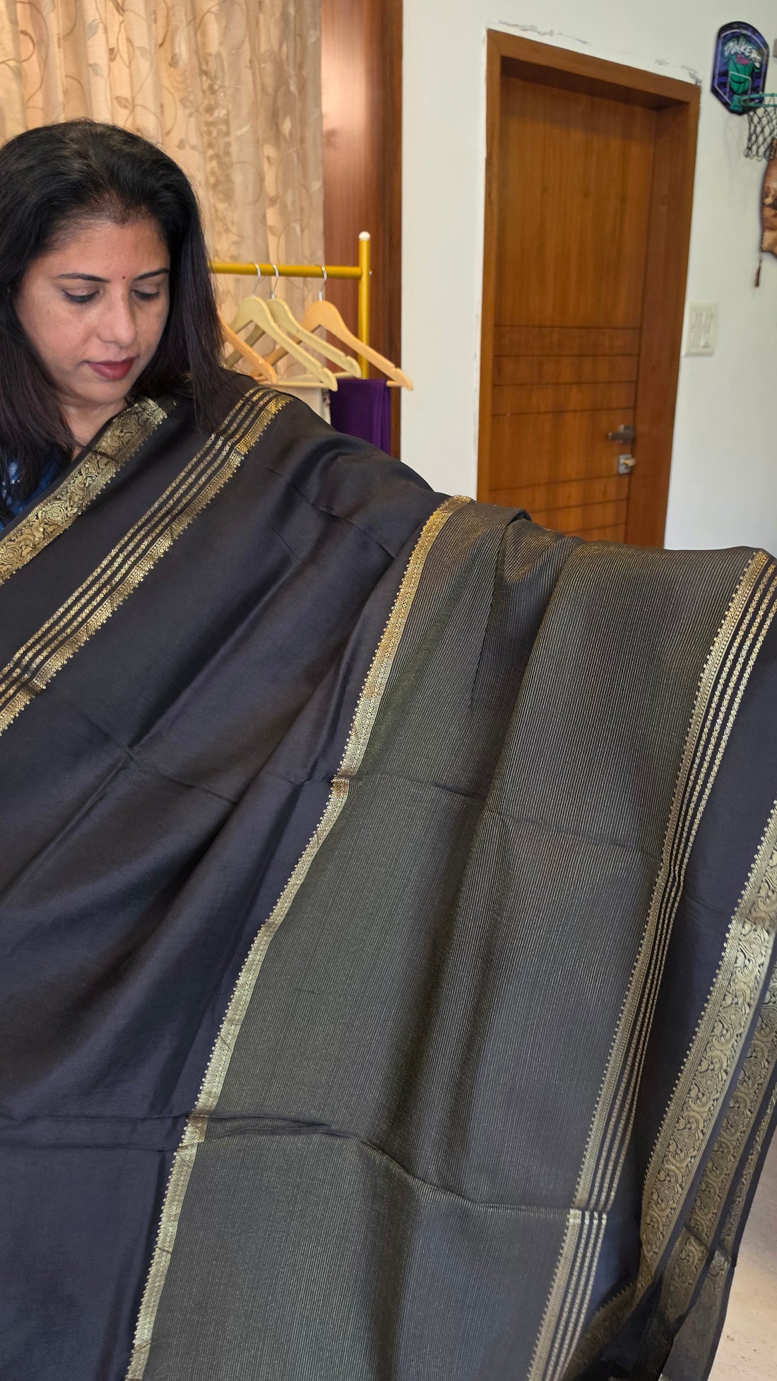 Fabric: Viscose silk Color: BlackPrint/ Design: Viscose Silk (Feels like Crepe Silk), Small Zari lines and...