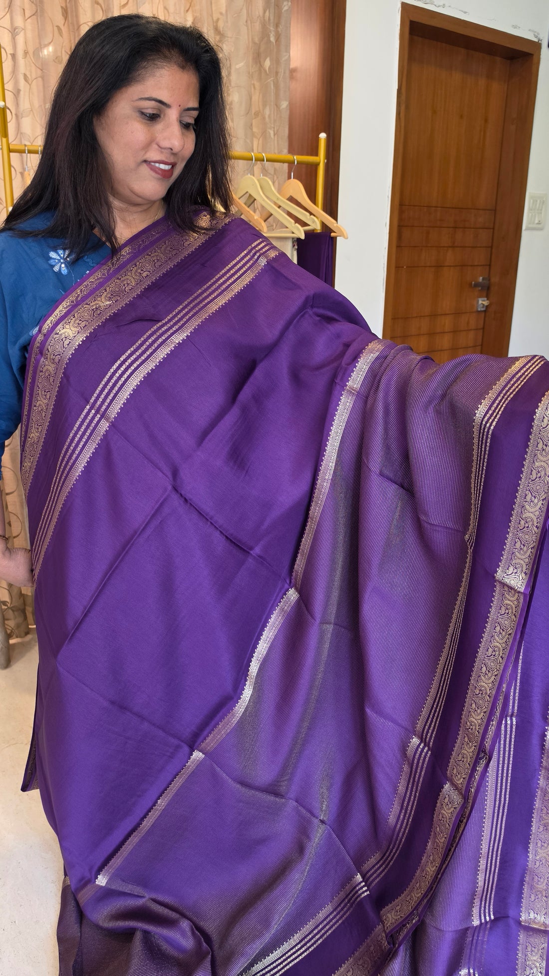 Fabric: Premium Semi Mysore Silk Color: Wine Print/ Design: Plain and Small border with Zari...