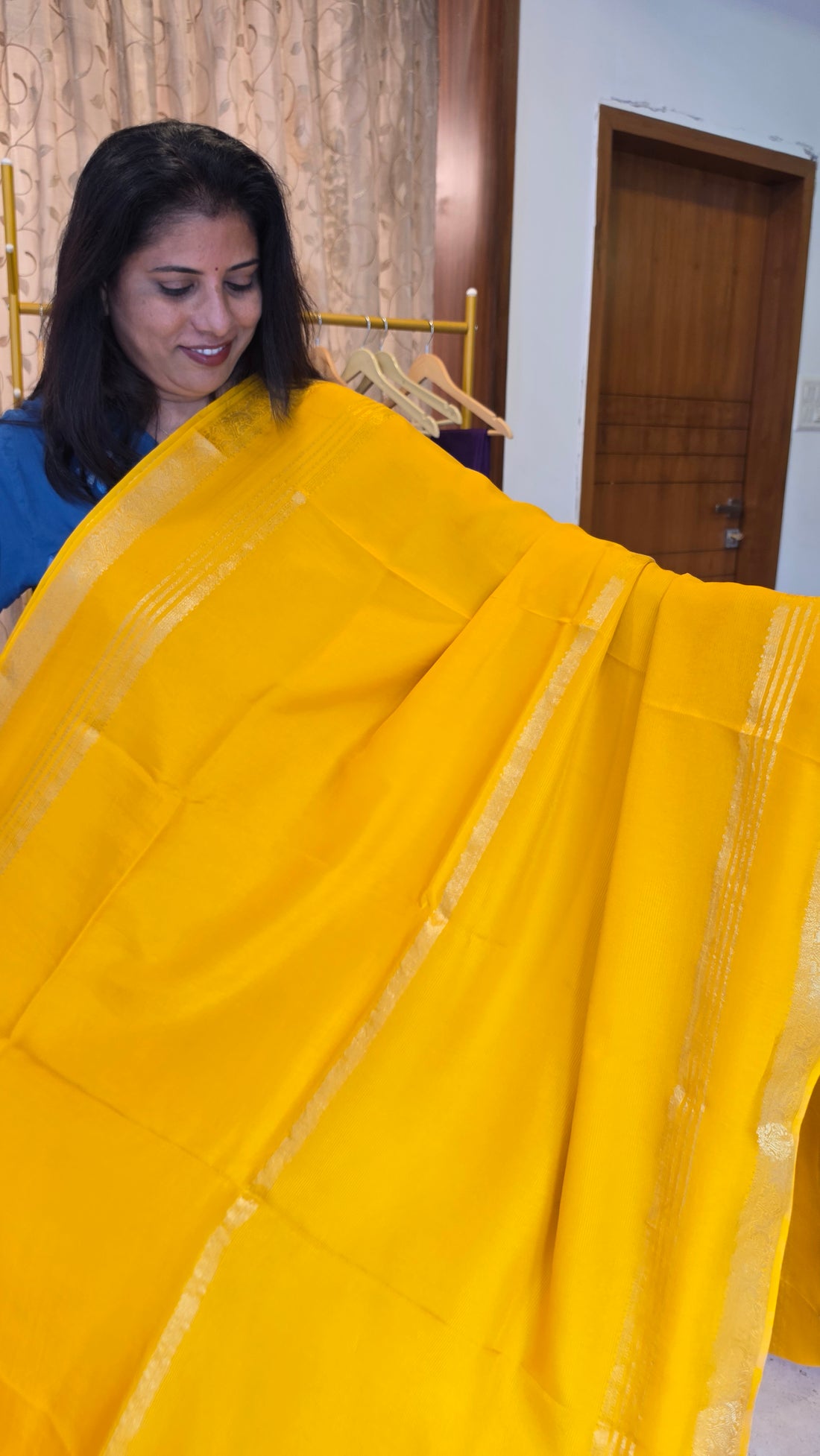 Georgette Crepe Silk with Golden Buttis- Mustard
