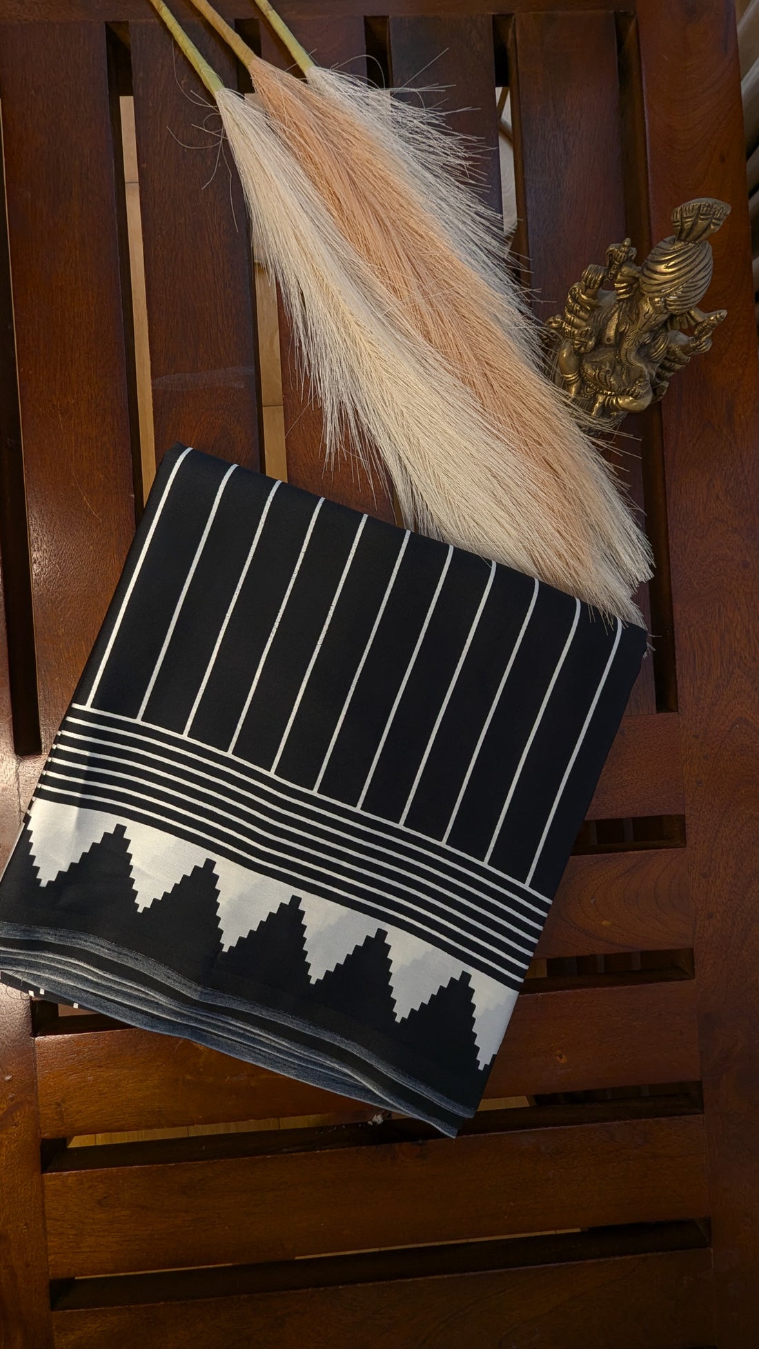 Fabric: Premium Bangalore Silk Color: Black and White zigzag pattern and Contrast Sky Blue color...