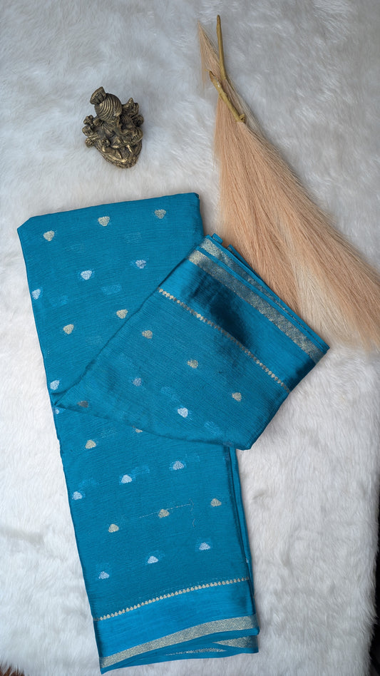 Blue with Golden Stripes Semi Crepe Silk Saree