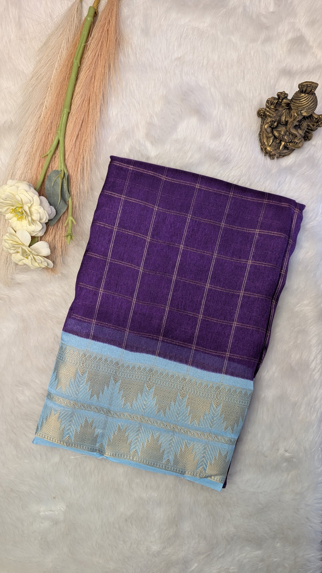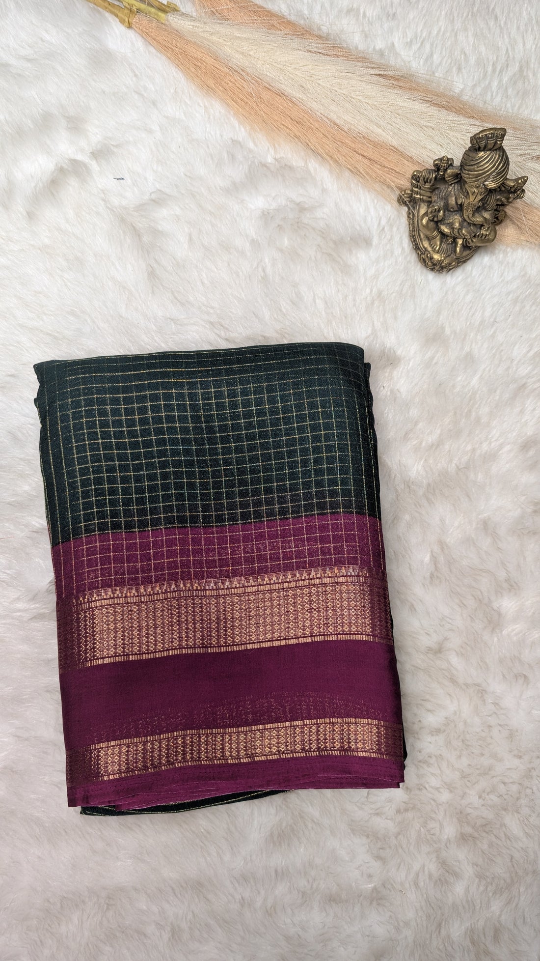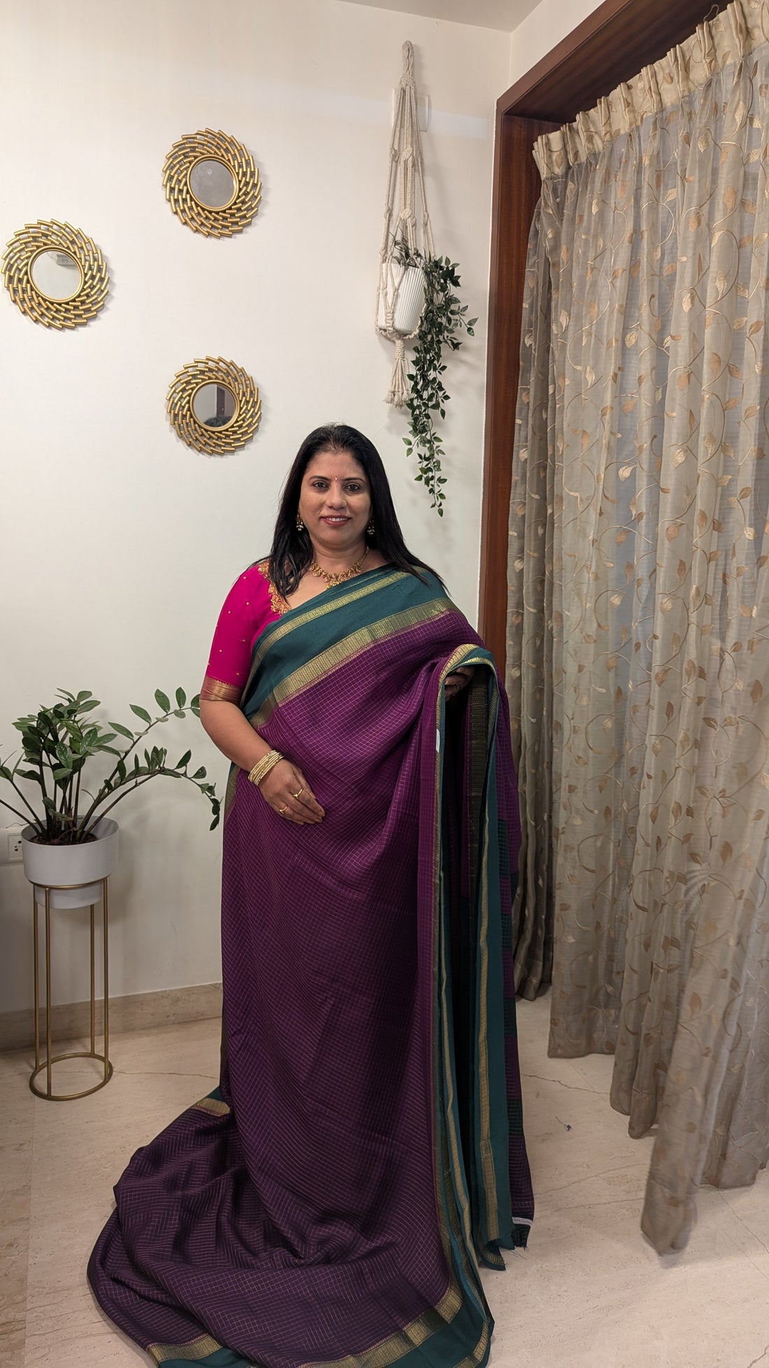 Saree: Soft Checks with Contrast Border Color: Dark Purple and Bottle Green Blouse: Border Color...