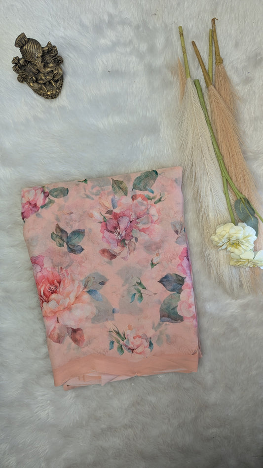 Peach Premium Georgette Floral Design Saree