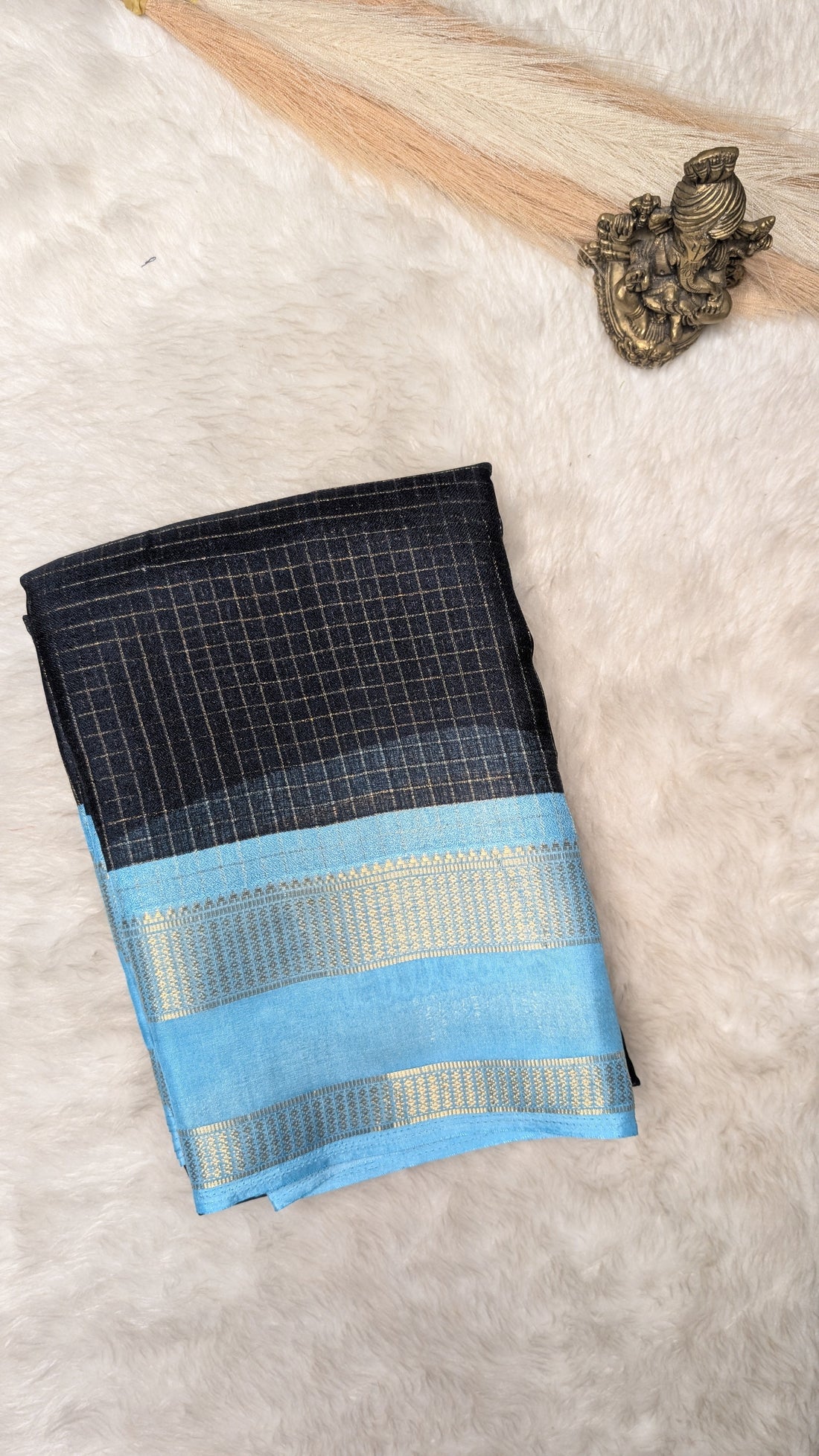 Saree: Small Checks with Contrast Border Color: Dark Blue and Light Blue Blouse: Border Color...