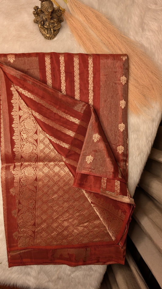 Georgette Crepe Silk with Golden Buttis- Rust Orange