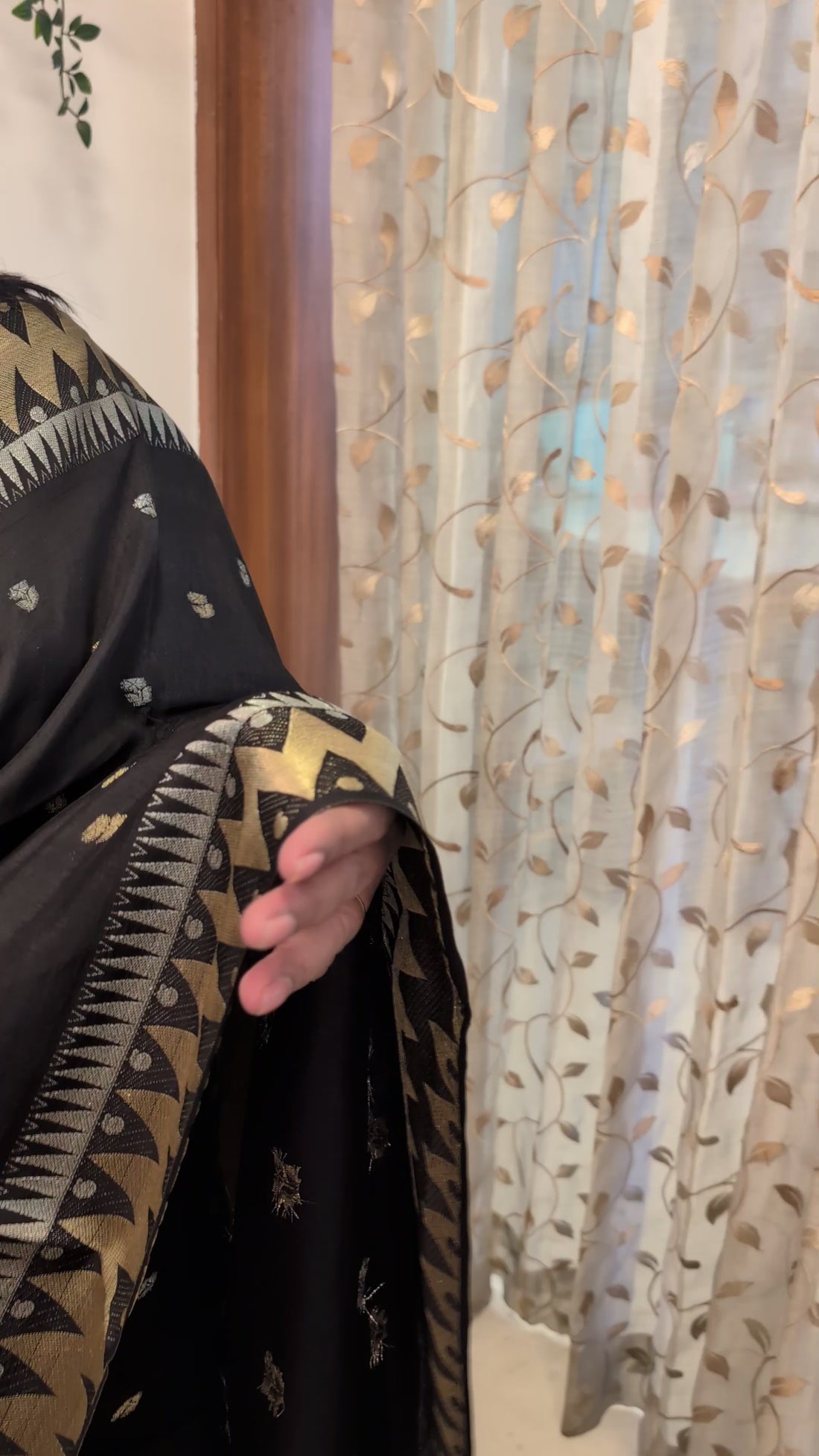 Fabric: Viscose Silk Color: Black Print/ Design: Silver and Golden Zari Border, Buttas. Saree feels like...