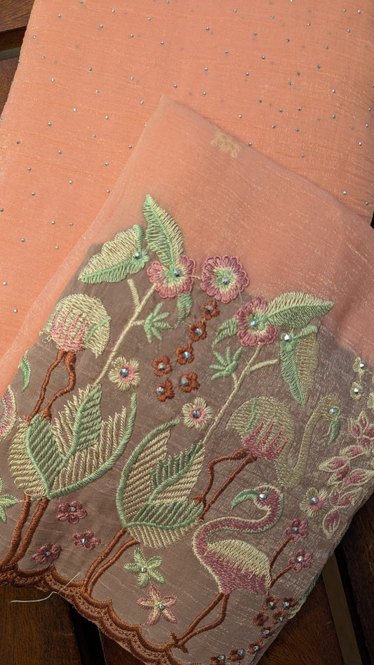 Mustard color with Golden Jari Border Soft Tissue Saree