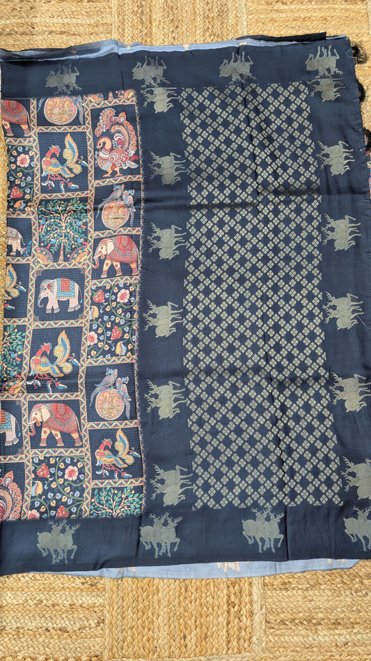 Cream and Grey Cotton mix Tussar silk with Embroidery