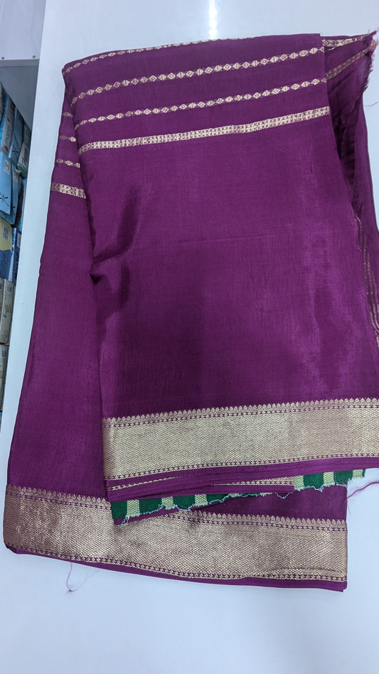 Wine color Semi Crepe Silk Saree with Center Zari Lines and Border