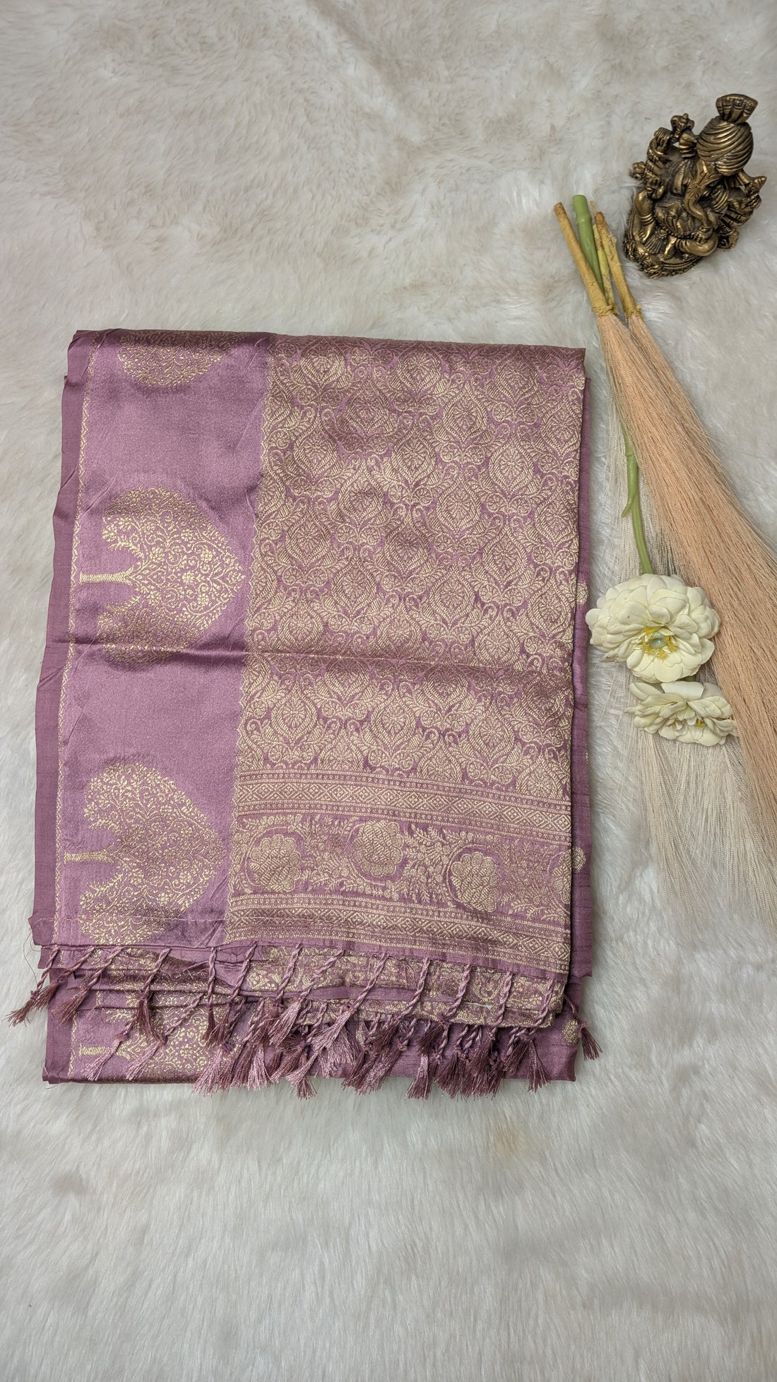 Fabric: Banarasi Silk Color: Purple with Lavender Border Print/ Design: Banarasi Zari Jaal design ,Rich...