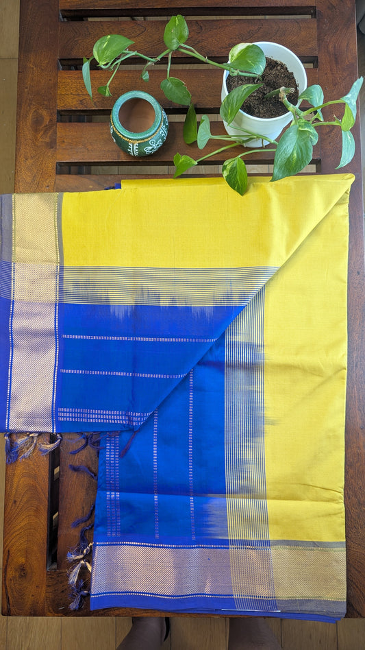 Yellow & Blue Pure Silk Cotton Saree