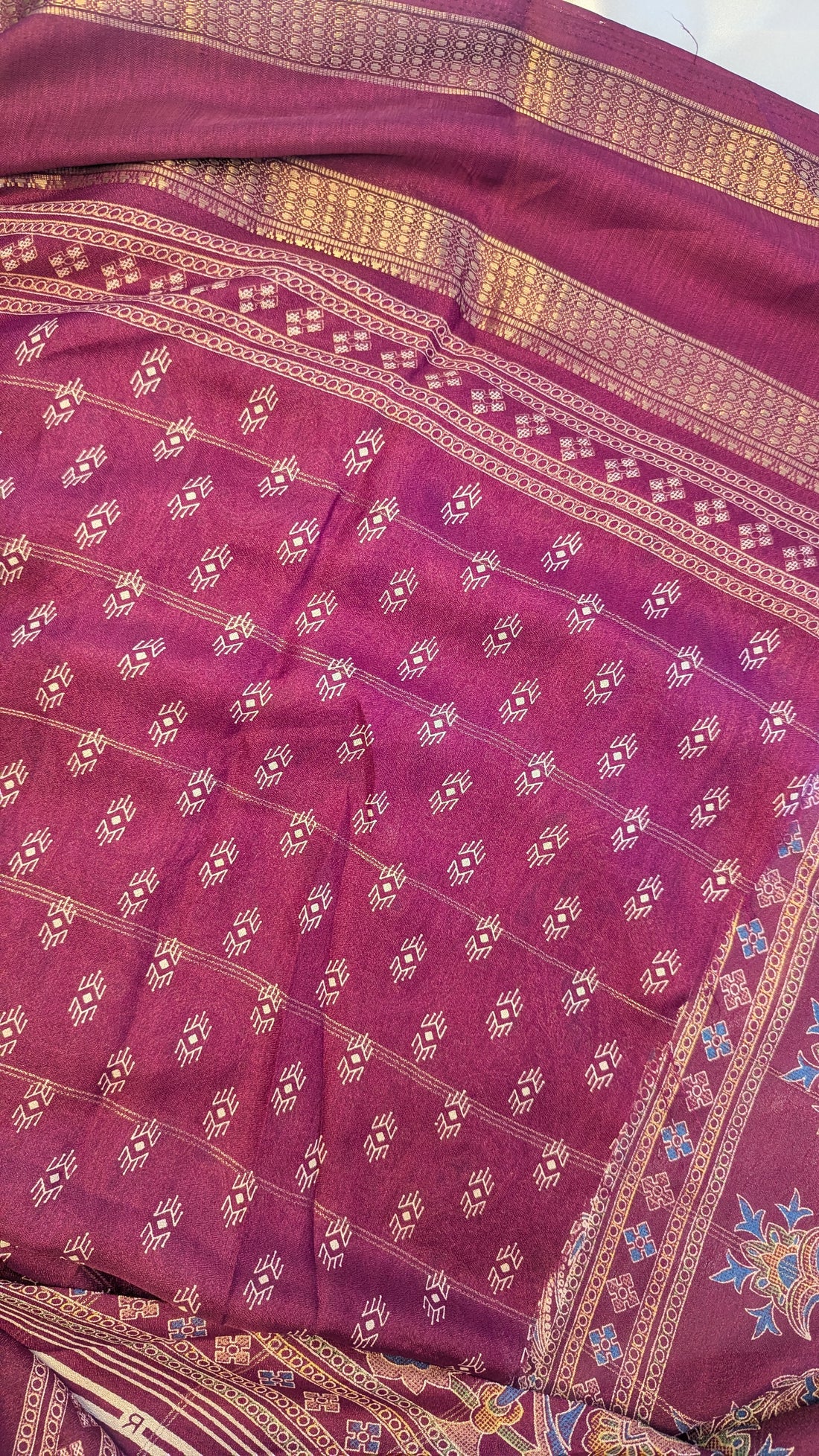 Fabric: Soft Color: Magenta Print/ Design: Paisley Prints Saree Length: 5.5 meters (approx.) Blouse Piece: Border...