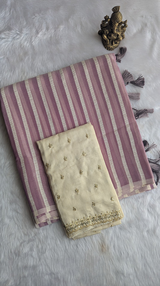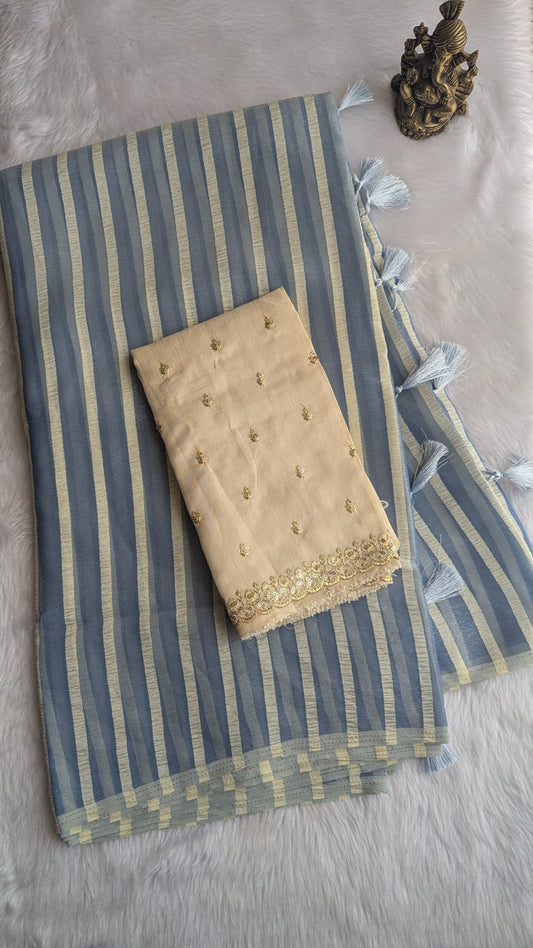 Cream and Grey Cotton mix Tussar silk with Embroidery