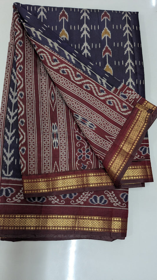 Maroon Red and Ajrakh Border Sateen Silk Saree