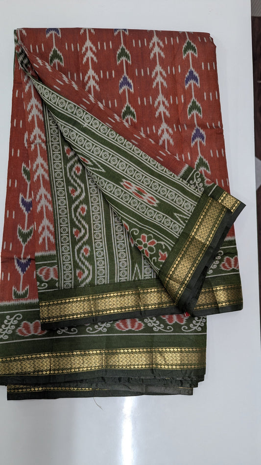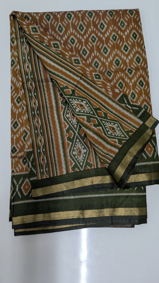 Bottle Green with Ajrakh Border Sateen Silk Saree
