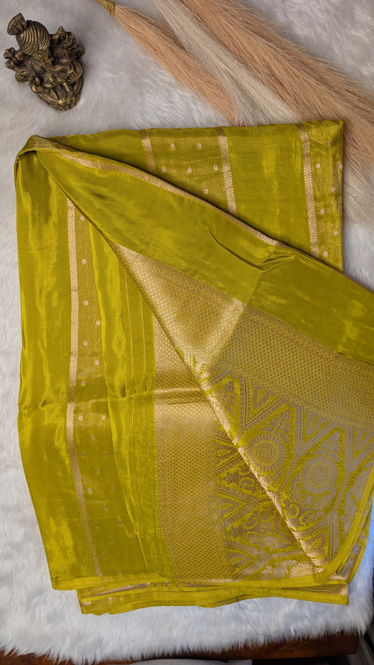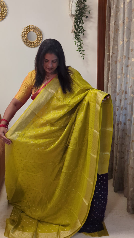 Peacock Green Crepe Silk with Checks and Border Buttis