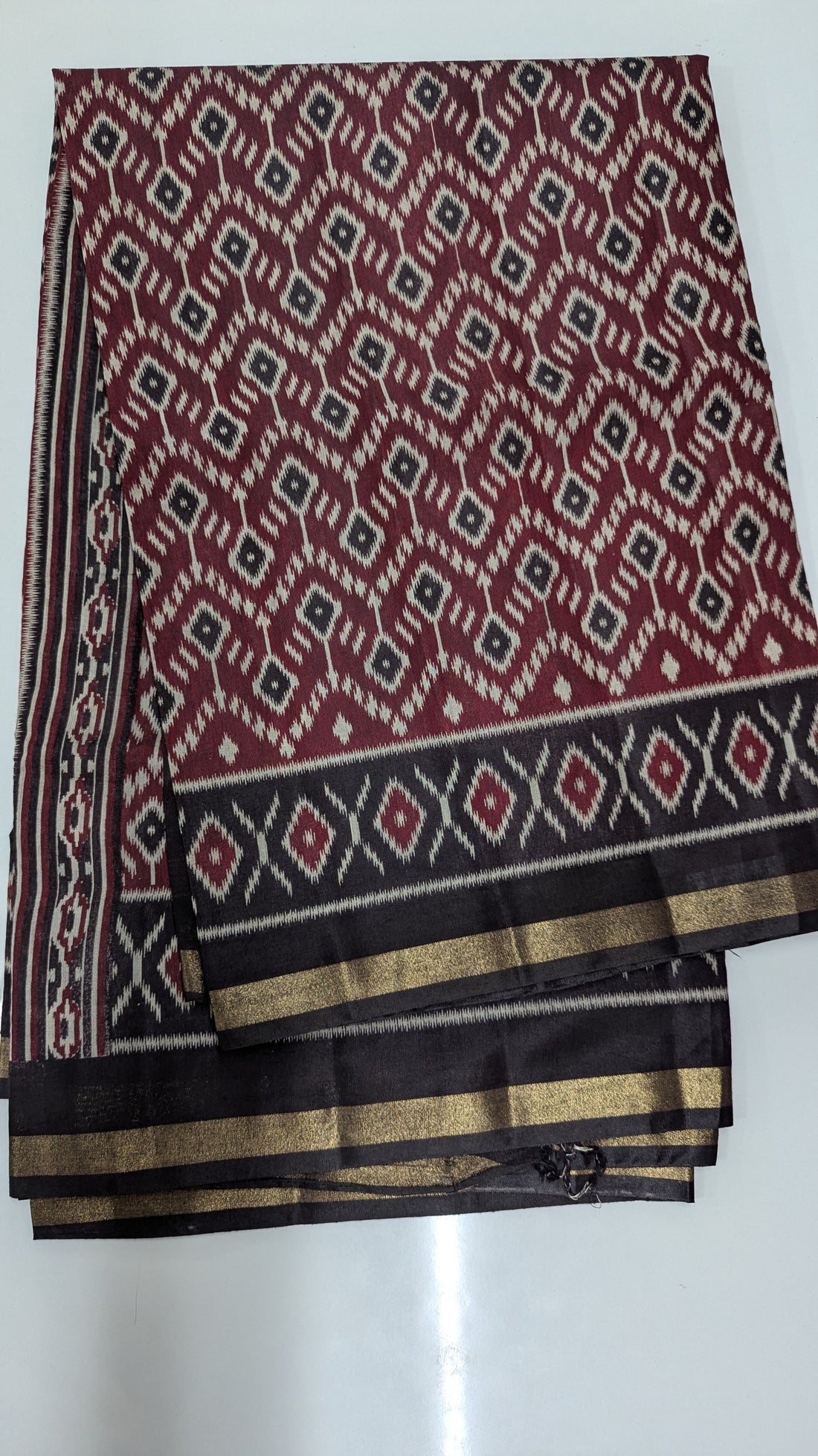 Maroon with Black border Cotton Blend Ikkat Saree