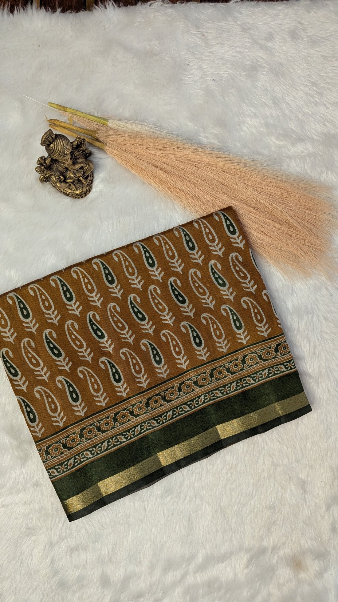 Mustard and Green Border Cotton Ikkat Saree