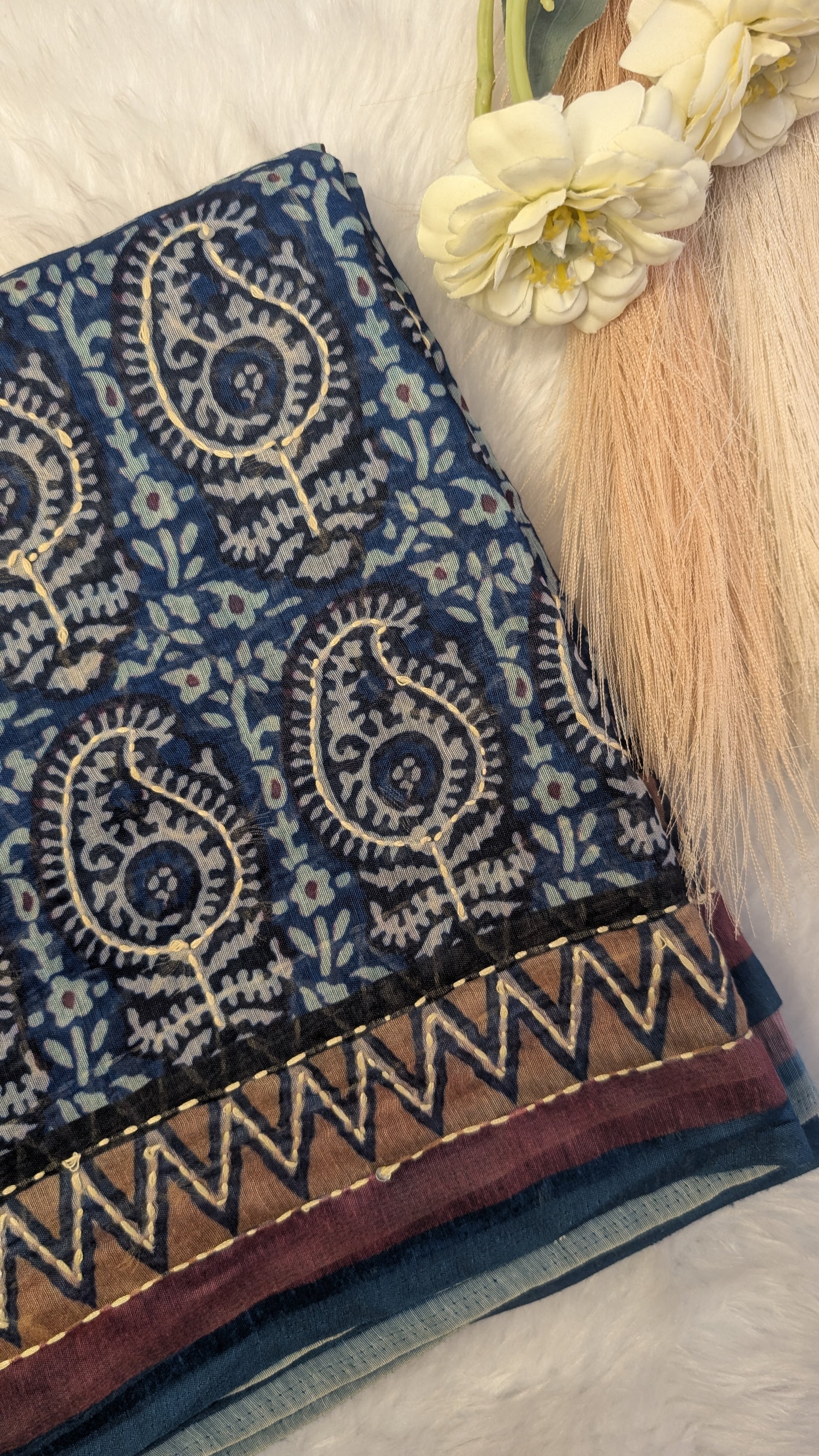Blouse Piece: Body Color with Small Butta and Thread Work Border