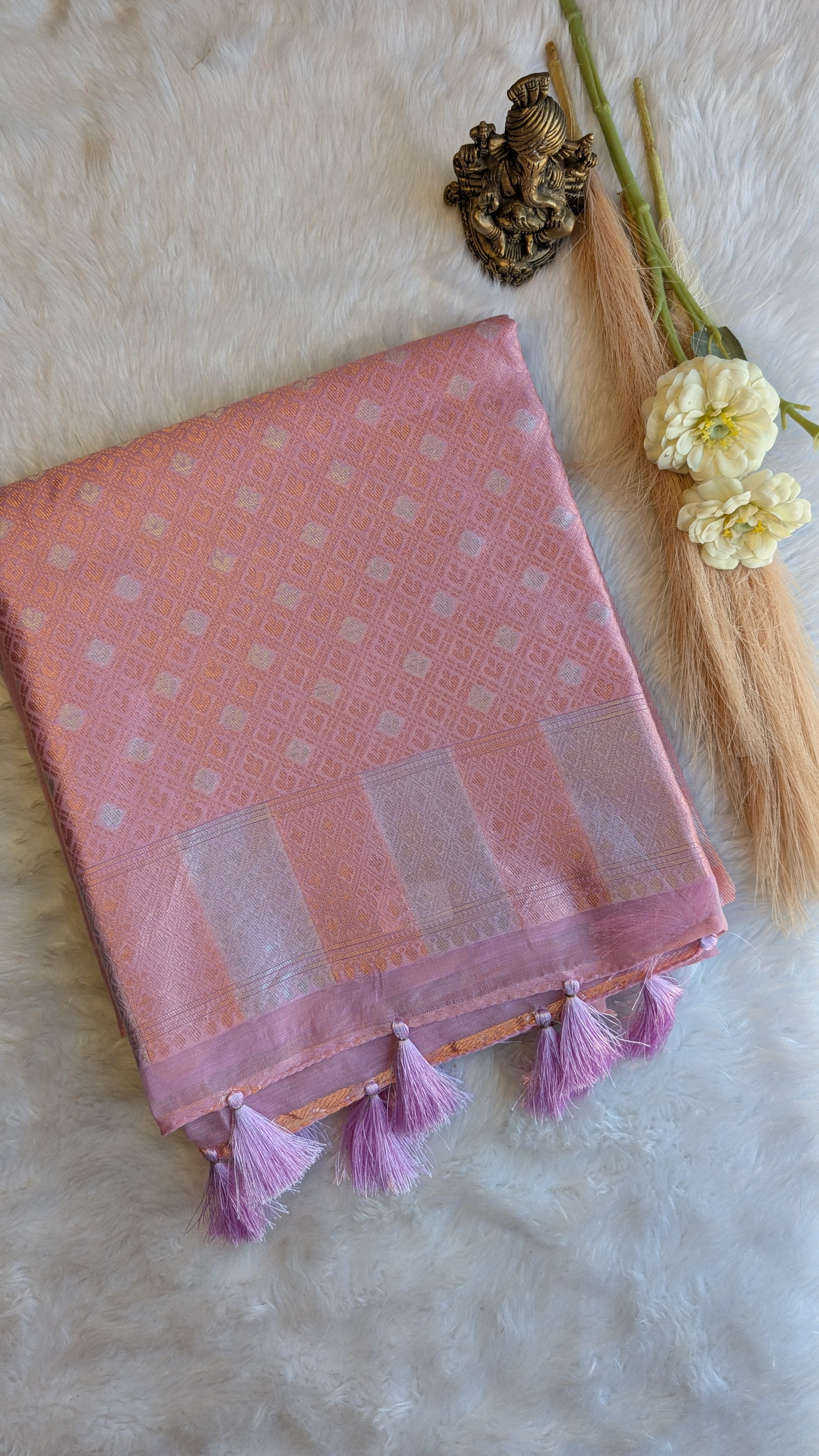 Print/ Design: Small silver and Copper buttas and Border. Rich Pallu