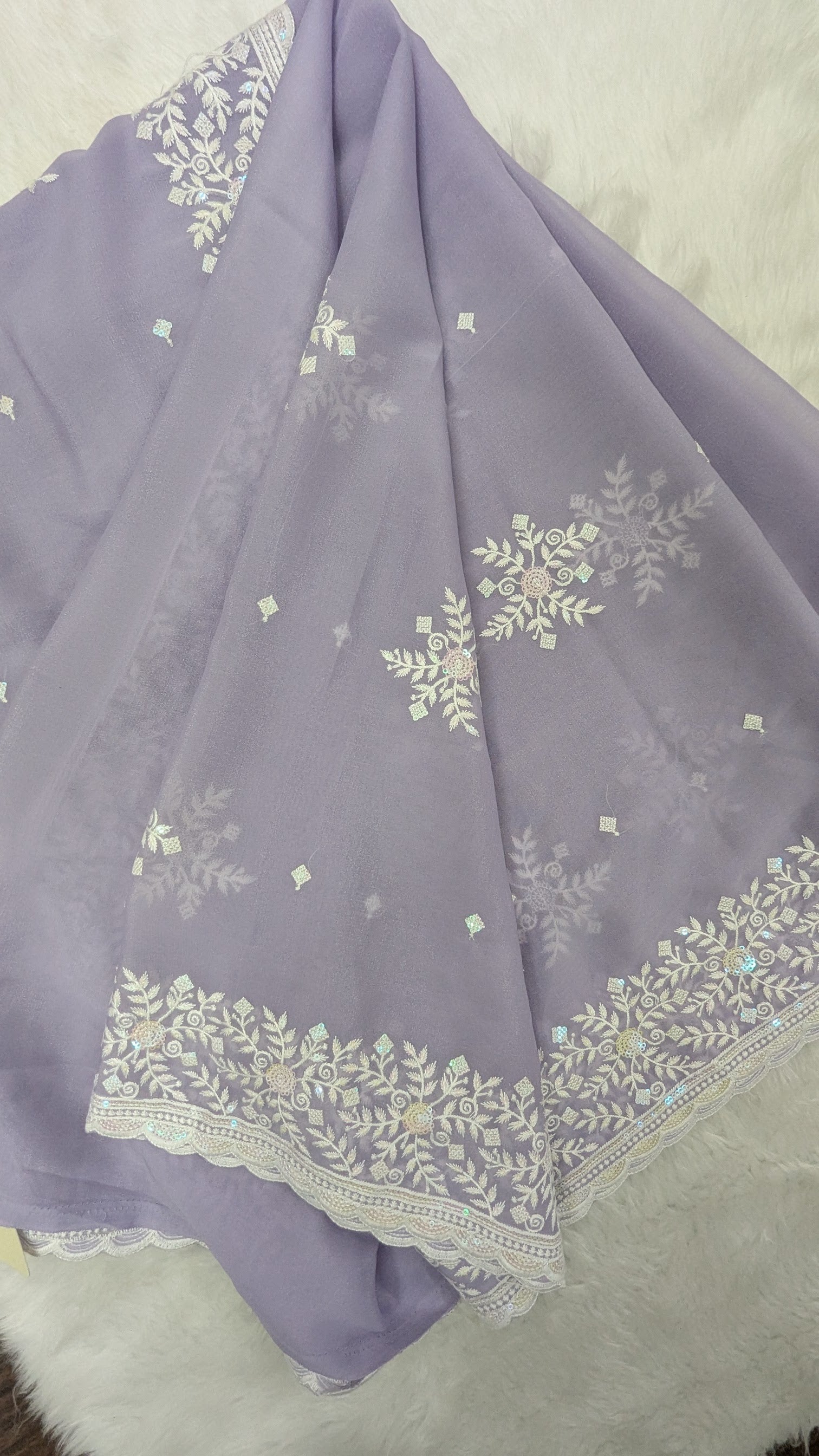 Lavender with White Embroidery work Saree