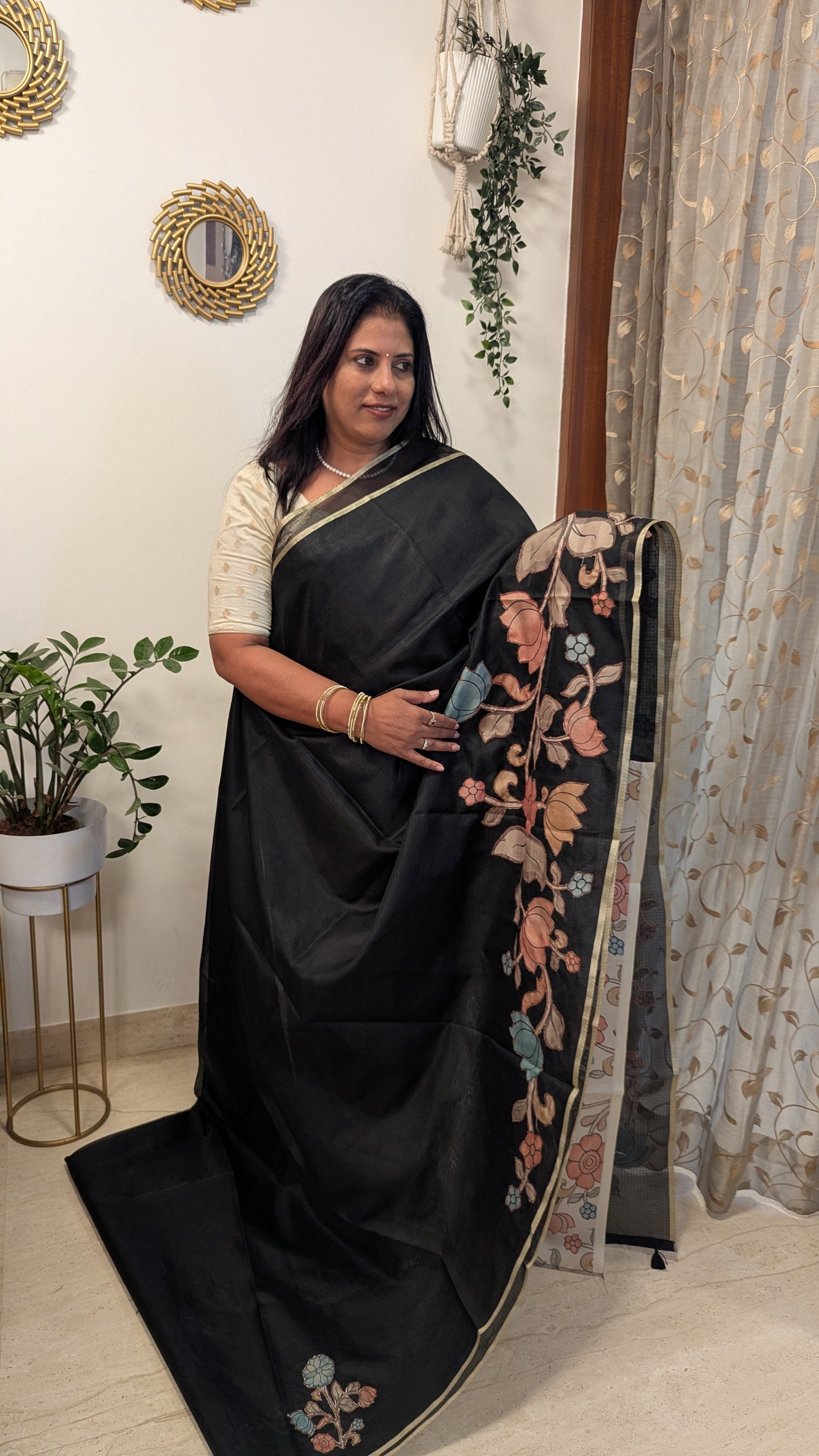 Kota Checks with Kalamkari Applique work-Black