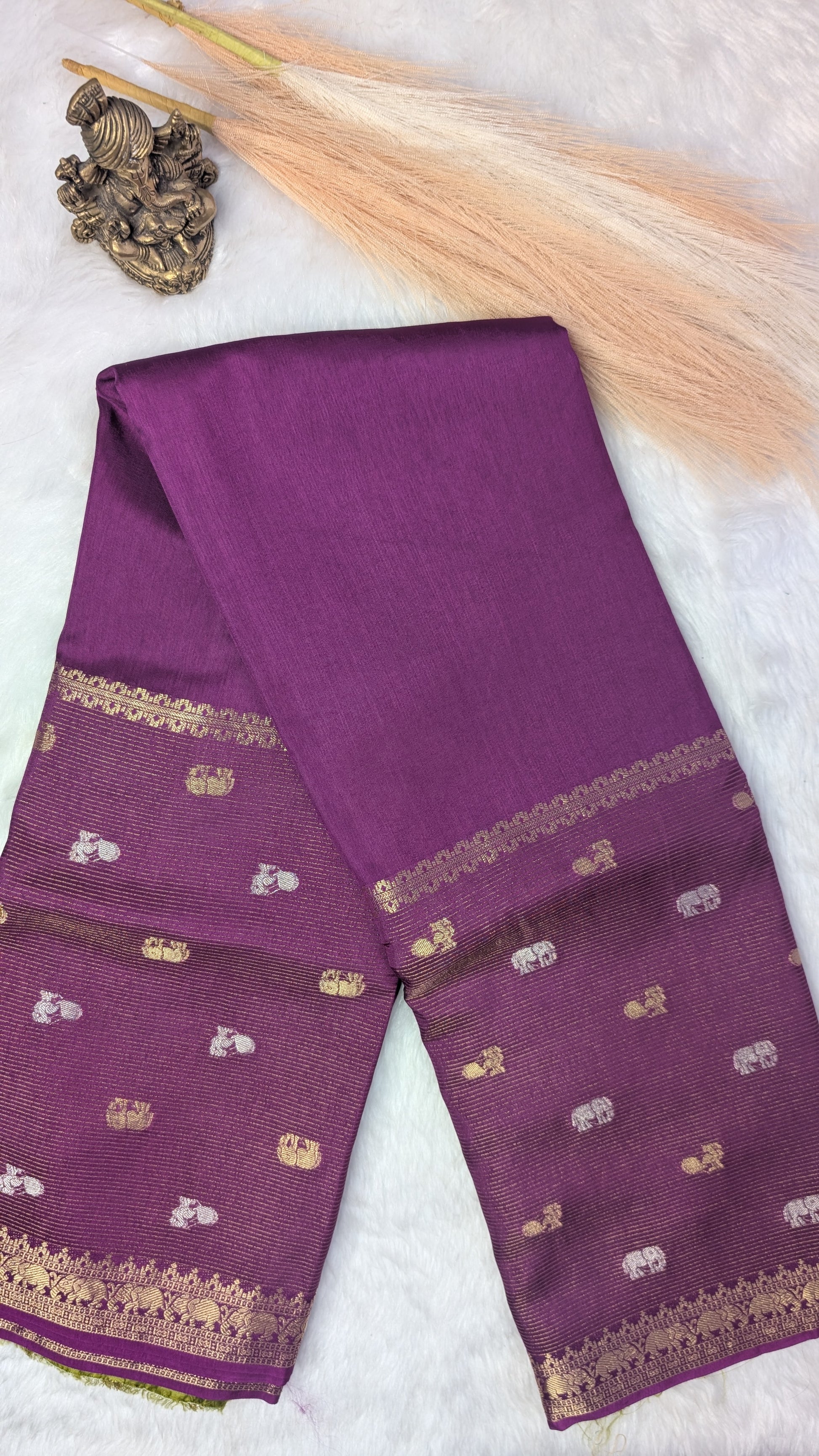 Purple Crepe Silk Saree with Big border with Zari lines and Buttis