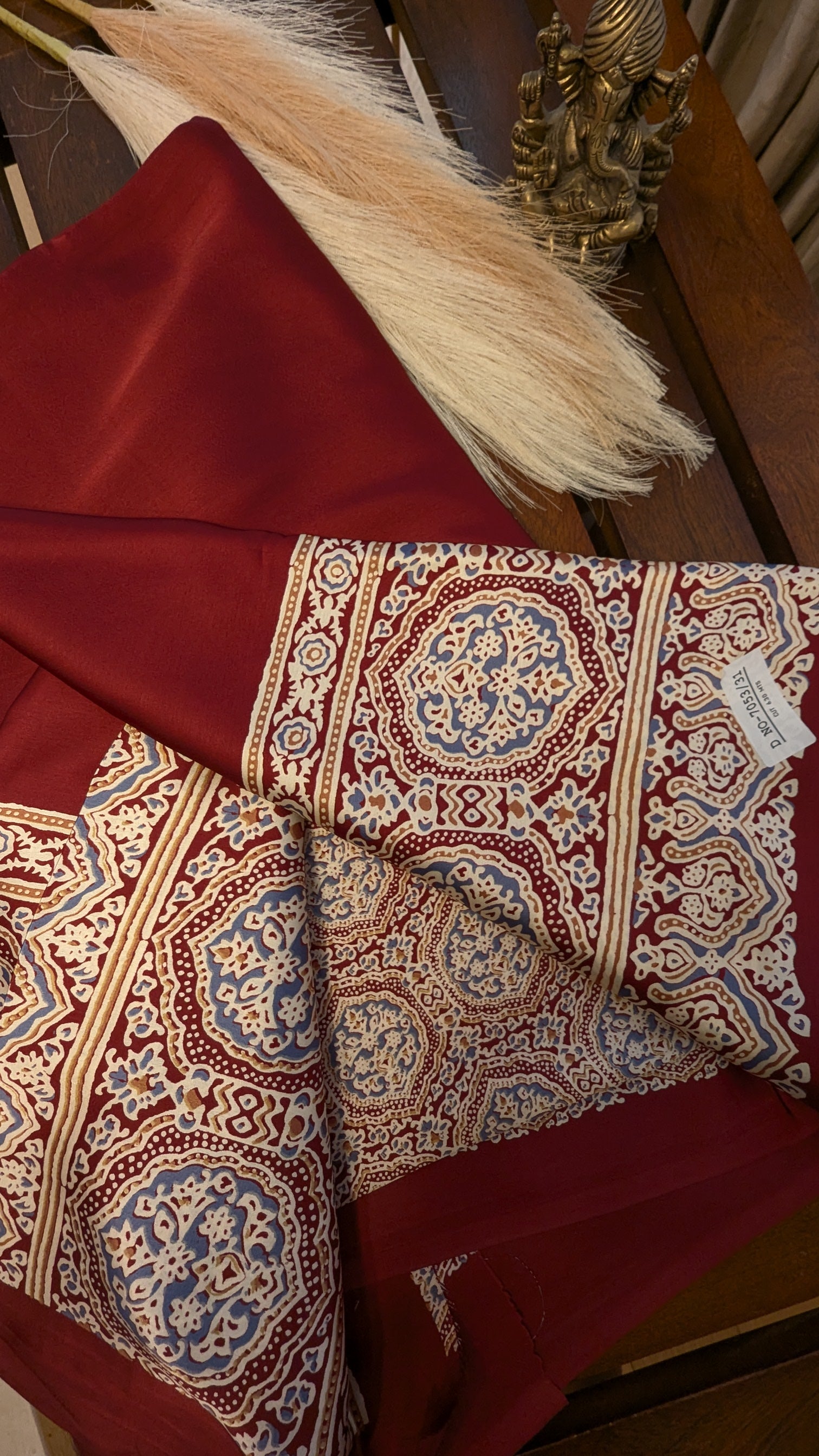 Maroon Red and Ajrakh Border Sateen Silk Saree