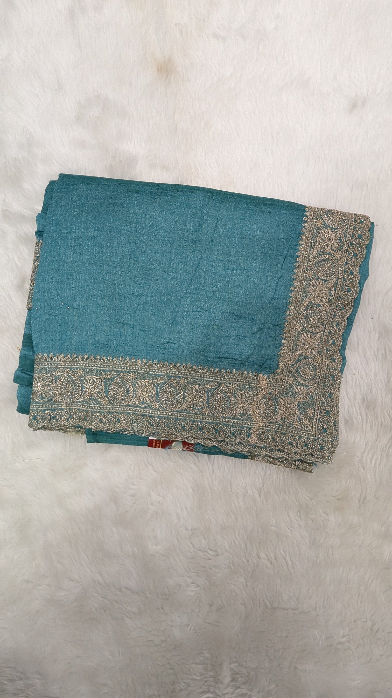 Turquoise Blue and Golden Zardozi Work border Saree