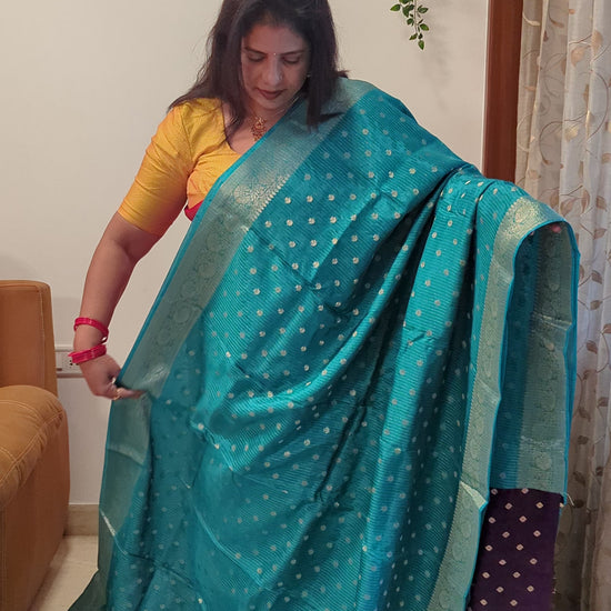 Blue Semi Banaras Silk Saree