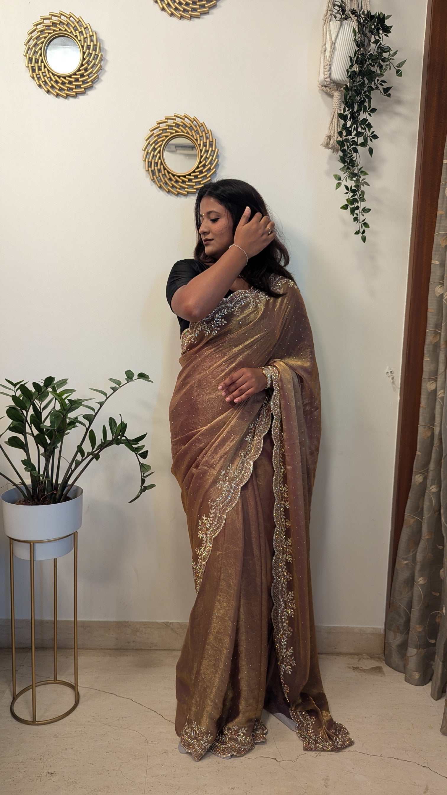 Tissue Saree With Stone Cut Work