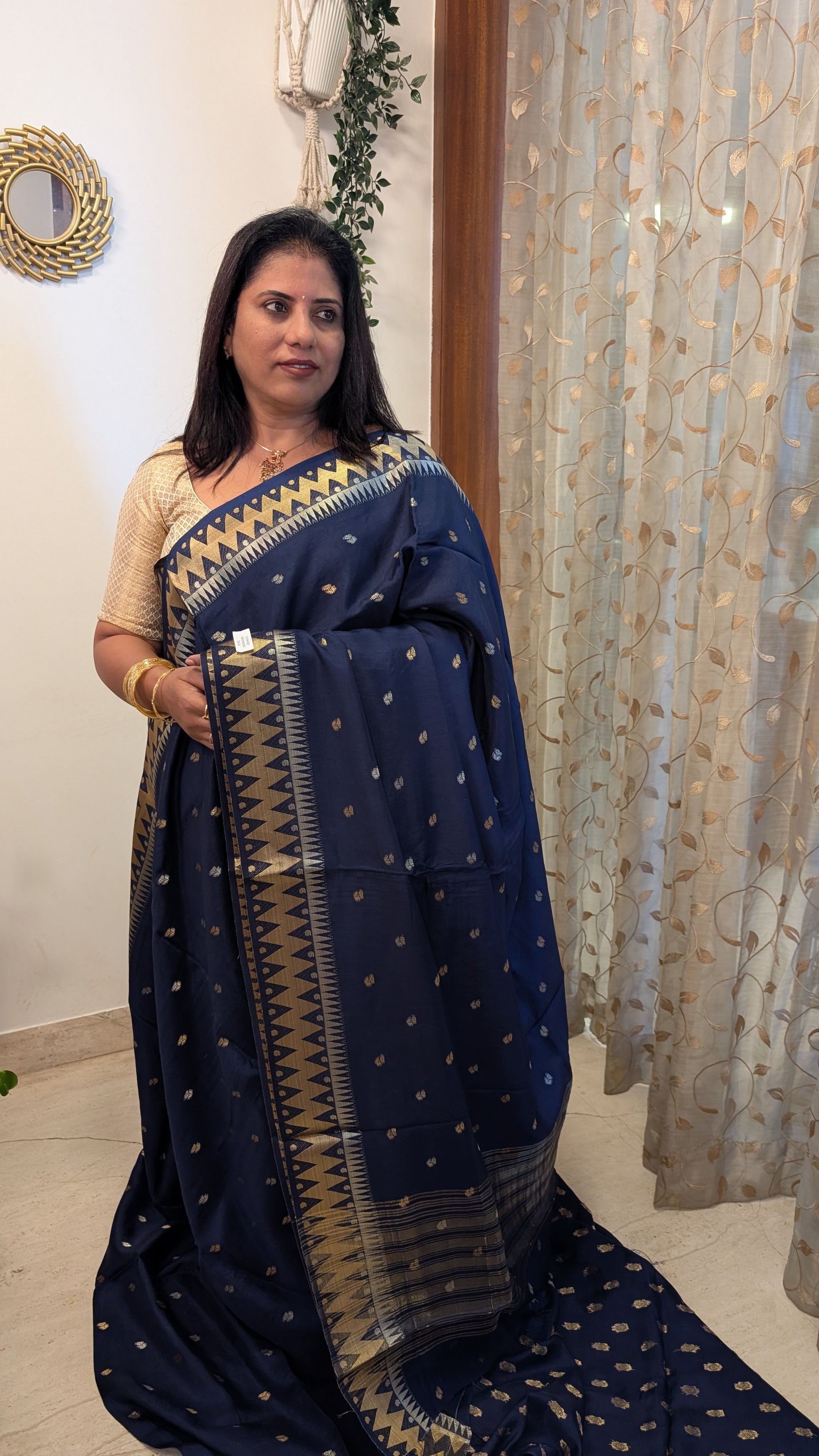 Blouse Piece: Blue color with small Zari Buttas